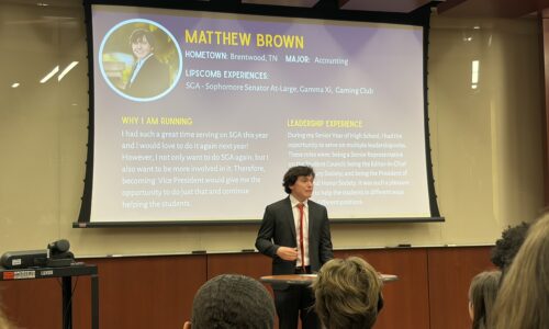 It’s Election Week at Lipscomb University, and in the words of current Student Government Association President Lydia Knobloch, that means “It’s time to pass the torch.” Last night, SGA hosted a Candidate Forum at 7 p.m. for Executive and Class Officer candidates to introduce themselves to their peers. Each candidate gave…