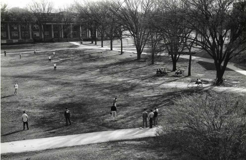 “The whole area was not paved; it was worn down because of all the traffic, and it got muddy and sloppy when it rained,” said Tim Parlow, a Lipscomb alum who attended from 1978 to 1982, the exact years of the project. “It had always been a natural gathering place, but once the square was built, you could almost always find people hanging out there.”