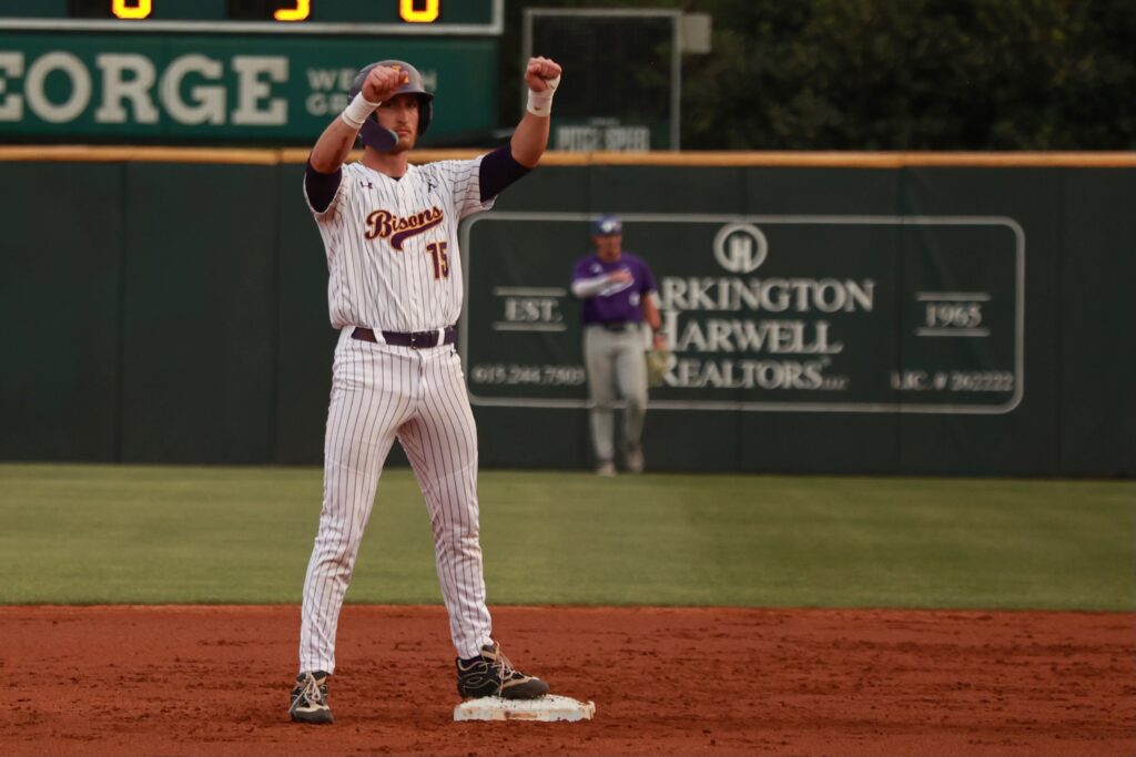 The Bisons fought back in the bottom half of the fifth when junior infielder Cam Pruitt singled home sophomore infielder Brady Miller to cut the deficit to one. The Bears added a solo home run in the sixth, but the game remained within reach until the eighth.