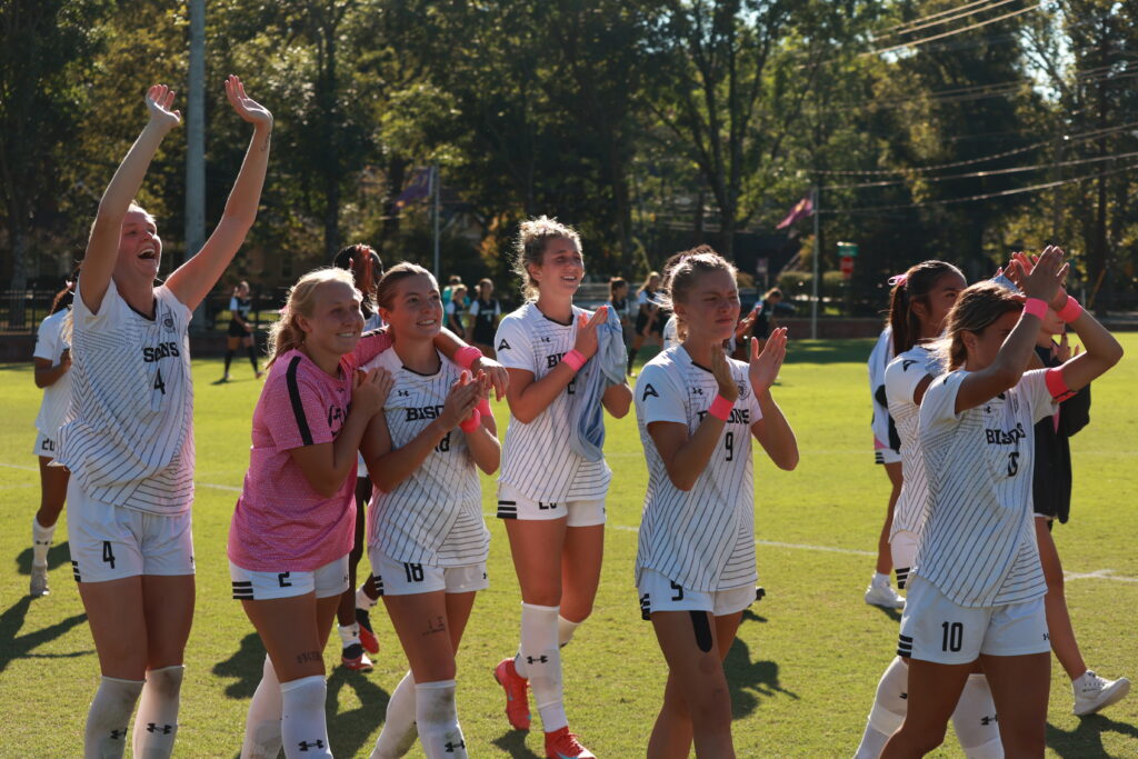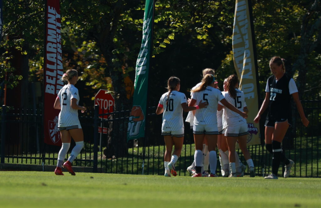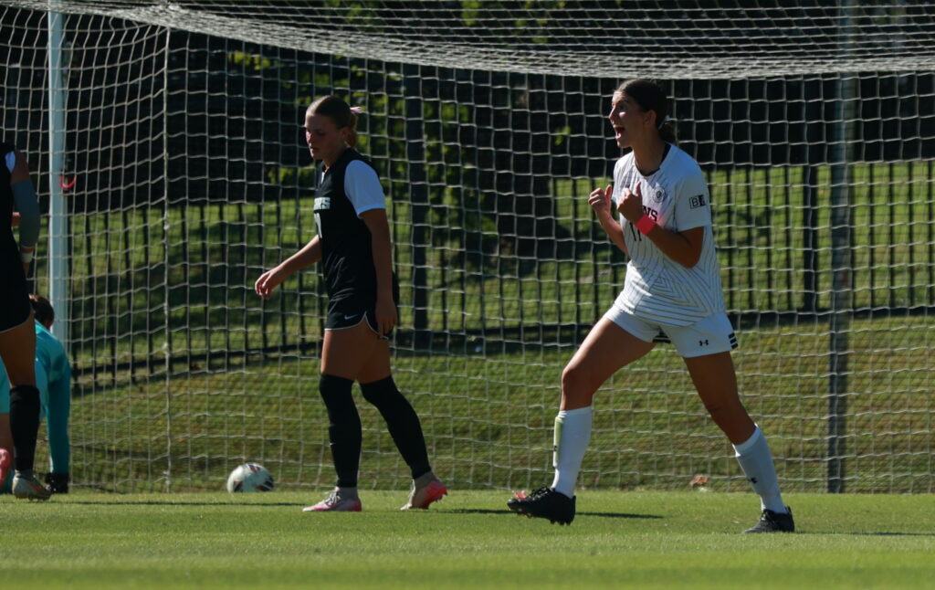 Following hot on her heels was sophomore midfielder London De Fini, who put the ball in the net less than 30 seconds later. This was De Fini’s first goal of the season, and celebratory chaos momentarily ensued.