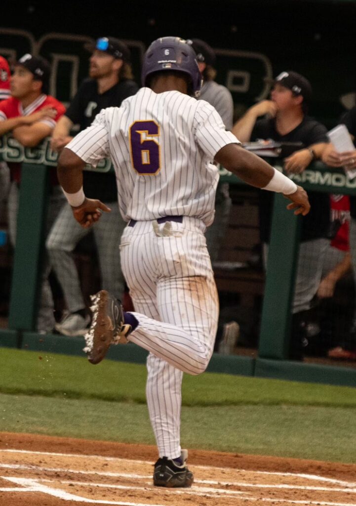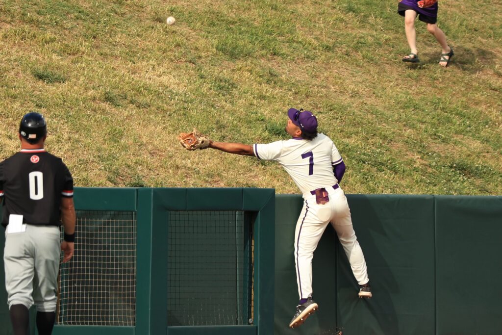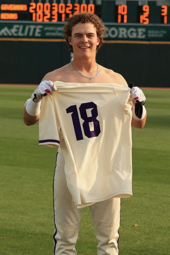 Then, the ninth inning. Redshirt freshman shortstop and right-handed pitcher Caden Shanks shut down the Govs in the top of the inning, holding them at 10. In the bottom of the inning, with two outs on the board, junior utility player Hutson Miles tripled out to right field.