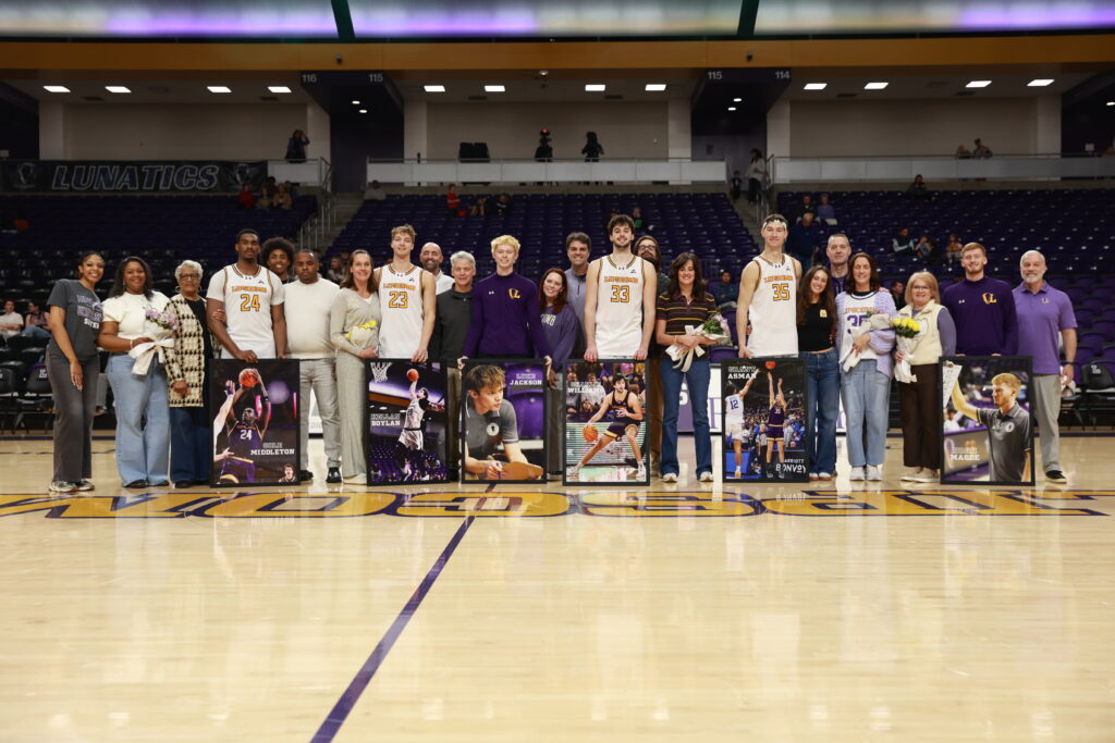Four of the Bisons were honored in the pregame ceremony: graduate student forward Cole Middleton, senior guard/forward Kellan Boylan, senior center Charlie Williams and graduate student forward Grant Asman. In addition, two of the team’s senior managers were honored, Luke Jackson and Noah Magee.