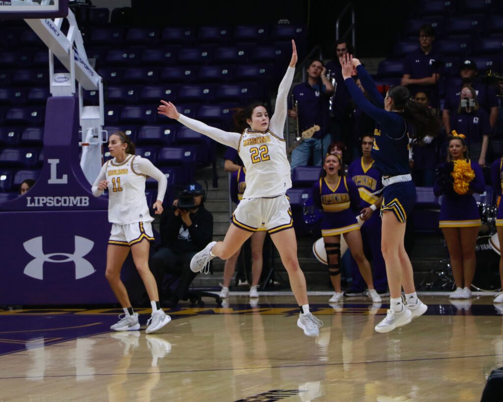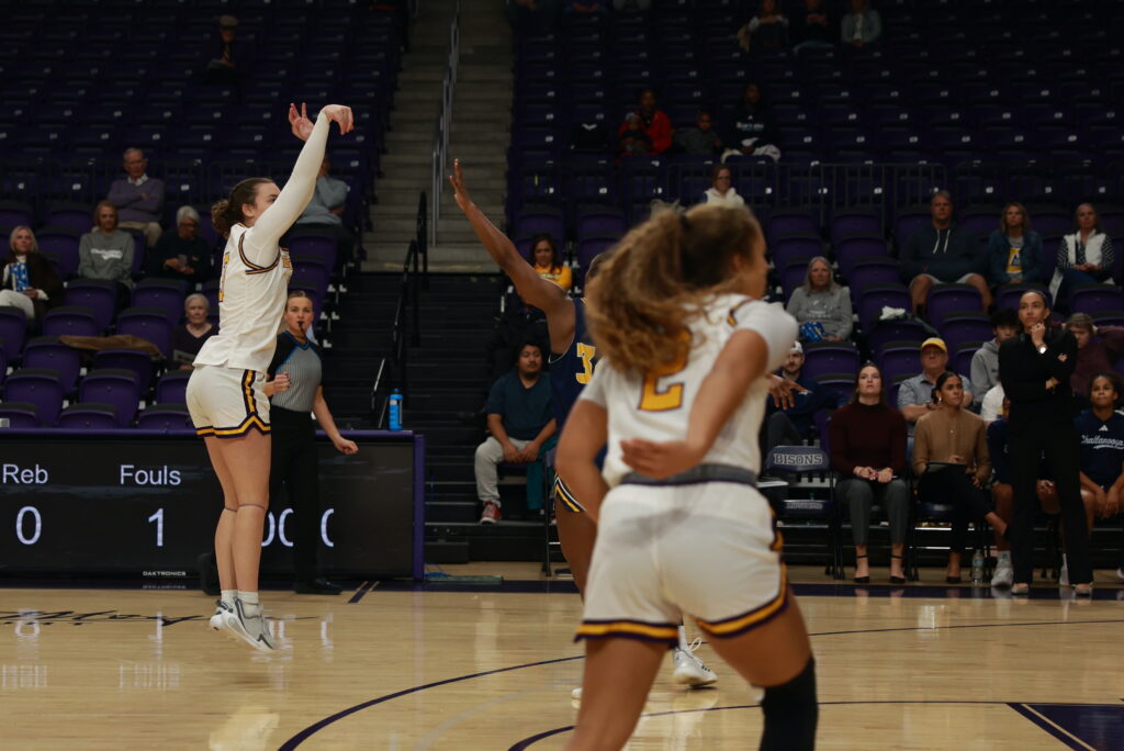 Junior transfer McKayla Miller opened the scoring for the Bisons, and two points from junior guard Elena Bertrand and sophomore transfer Hannah Richardson had the Bisons trailing 7-6 at the first media timeout.