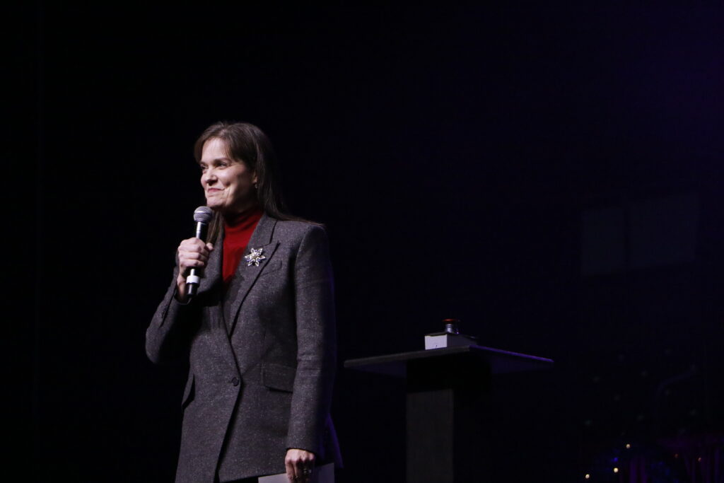President of Lipscomb University Candice McQueen prepares to light the green.